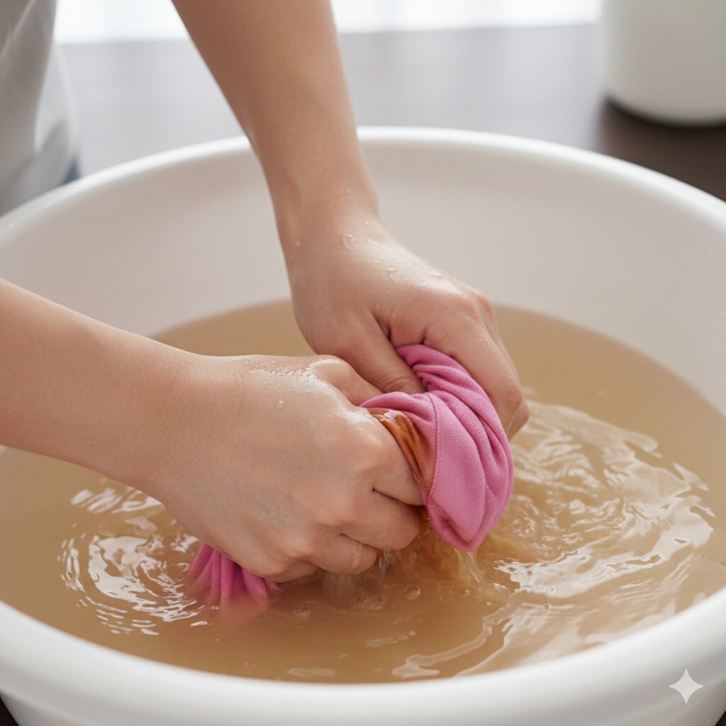 洗濯機で普通に洗っただけでは“うっすら茶色い跡”が残ることもあります。