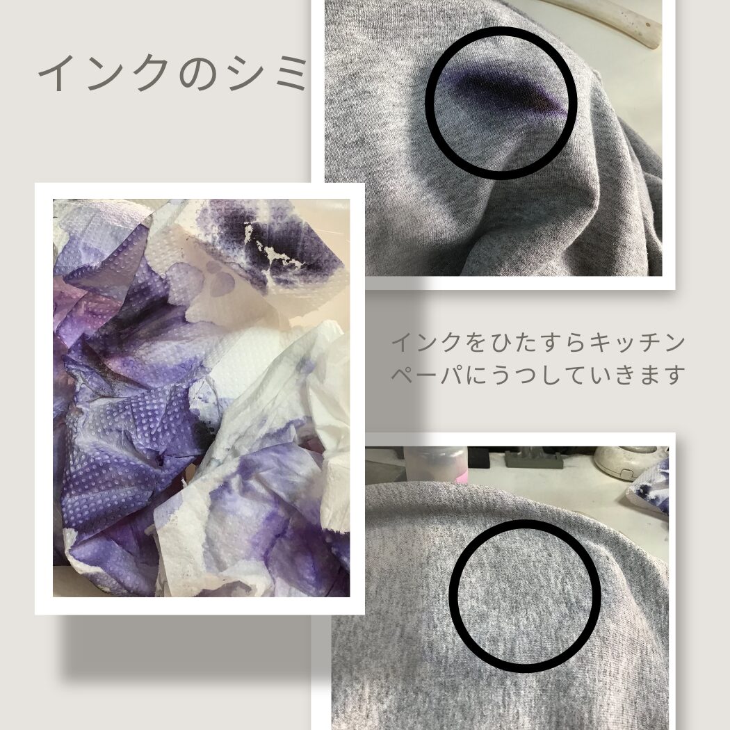 こちらも下にタオルを敷き、インクを移し取るイメージです。